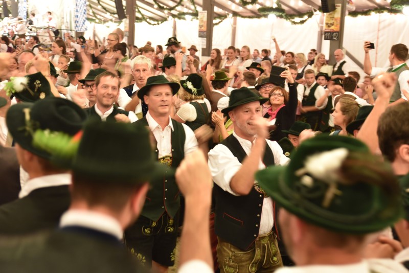 sich die Burschen an jedem freien Fleckerl im größten freistehenden Bierzelt