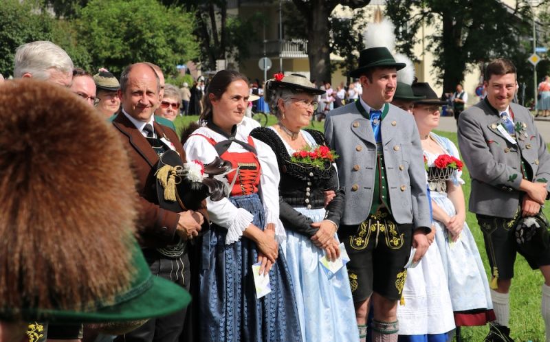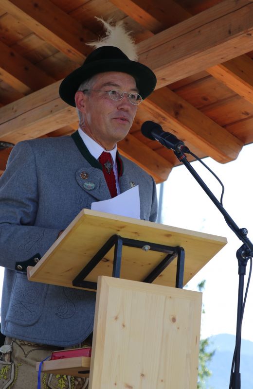 Otto Lederer begann sein Grußwort mit der freudigen Mitteilung, daß nicht nicht nur das Gaufest heute gefeiert werden kann, sondern auch, dass das Schloß Herrenchiemsee und überhaupt die Königsschlösser nun Weltkulturerbe sind. „Vier Generationen Landräte hat des gebraucht, dass wir das erreicht haben“ sagt er. „Ähnlich ist’s mit dem Erbe, das wir als Trachtler und Trachtlereinnen übernommen haben, mit unserem Brauchtum und unser Tradition. Es ist für uns heute Verpflichtung, dass wir dieses Erbe auch in die Zukunft weitergeben.“ Diese Weitergabe soll auch im Alltag sichtbar werden, und so freut er sich besonders, daß am Montag, 14. Juli der „Tag der Tracht“ in ganz Bayern stattfindet. „An diesem Tag können wir die Vielfalt und die Einzigartigkeit unserer Tracht zeigen. Das Allerwichtigste, was wir dabei den Menschen in Bayern mitgeben können, ist, dass wir die Tracht lebendig halten, dadurch dass wir sie tragen und vor allem dadurch, dass wir hinter den Werten stehen, die unsere Tracht symbolisiert“ schloß er seine Ansprache.