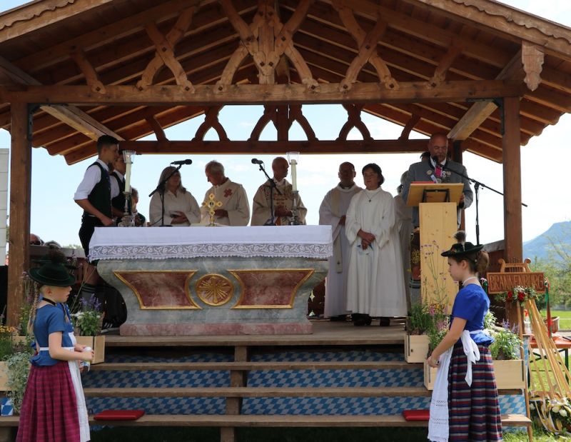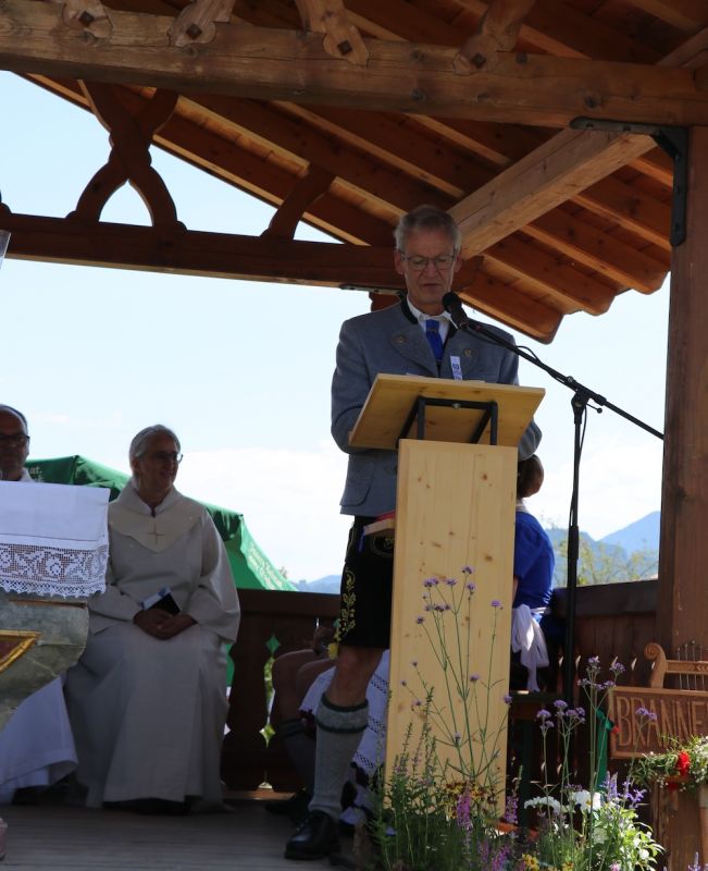 Nach dem vom Kirchenchor und der Brannenburger Musikkapelle umrahmten Gottesdienst dankte Bürgermeister Matthias Jokisch in einer kurzen Ansprache allen, die da sind, um Tracht, Brauchtum und Tradition zu feiern und weiterzutragen. Außerdem dankte er allen, die die Verantwortung für die Festtage übernommen haben und allen die mithelfen und mitgeholfen haben - und auch bis zum Abbau dabei sein und tatkräftig anpacken werden.