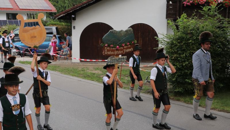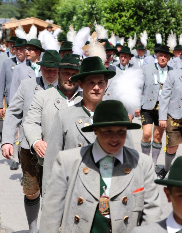 In der folgenden Heiligen Messe startete der Brannenburger Pfarrer Kraus seine Predigt mit dem Phänomen, dass nicht neu ist, aber zunimmt: dass an Unfallorten fotographiert wird, anstatt zu helfen und sogar die Rettungskräfte blockiert werden, nur um ein außergewöhnliches Bild zu haben, das man in den sozialen Medien posten kann. „Haben die Menschen ihre Sensibilität und ihr Mitgefühl verloren?“ fragt er „haben sie noch ein Gespür für die Notleidenden und wie würden sie die Situation beurteilen, wenn sie selber die Verunfallten wären?“ Er betont, daß die Sichtweise, aus der etwas heraus beurteilt wird, von großer Bedeutung ist und schlägt damit den Bogen zum Tagesevangelium vom barmherzigen Samariter: im bekannten Gleichnis von Jesu gehe zwei Gelehrte an einem Notleidenden vorbei, weil das Gesetz es ihnen verbietet, sich durch die Hilfe unrein zu machen. Erst ein Mann aus Samarien hilft dem Verunfallten. „Bevor wir die ersten beiden verurteilen, sollten wir uns fragen: haben wir nicht selbst oft genug Angst, uns unrein zu machen und fallen uns nicht selber oft genug Entschuldigungen ein, warum wir das eigentlich Notwendige nicht tun können?“ Dass im Gleichnis ausgerechnet der in der Gesellschaft aussenstehende Samariter hilft, nimmt Pfarrer Kraus als mahnenden Hinweis an die anwesenden Trachtler: „auch wir stecken gern Grenzen und grenzen damit aus: der „hinter der anderen Seite vom Inn“, der „Preiß“, der „uns nicht Zugehörige“, „derjenige der nicht in unser Denkschema passt“ - und ausgerechnet der schenkt Nähe.“ Jesus fordere, dass nicht falscher Standesdünkel oder sonstige Unzulänglichkeit der menschlichen Nähe und Hilfe im Wege stehen. Zum Schluß seiner Predigt betont er, dass der bayerische Satz „I mog Di“ als Maxime gelten kann: „vollständig heißt der Satz „I mog di leiden“ - ich zeige Mitglied mit dir: wir brauchen keine Gaffer, wir brauchen takträftige Helfer, die zu den Leuten sagen: „i mog di“".