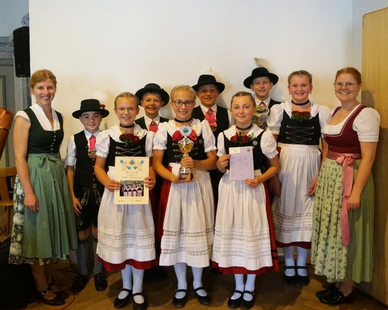 Beim Gaujugendpreisplatteln in der Wendelsteinhalle in Brannenburg traten 88 Kinder und Jugendliche in drei Altersklassen und 15 Gruppen in zwei Altersklassen gegeneinander an.