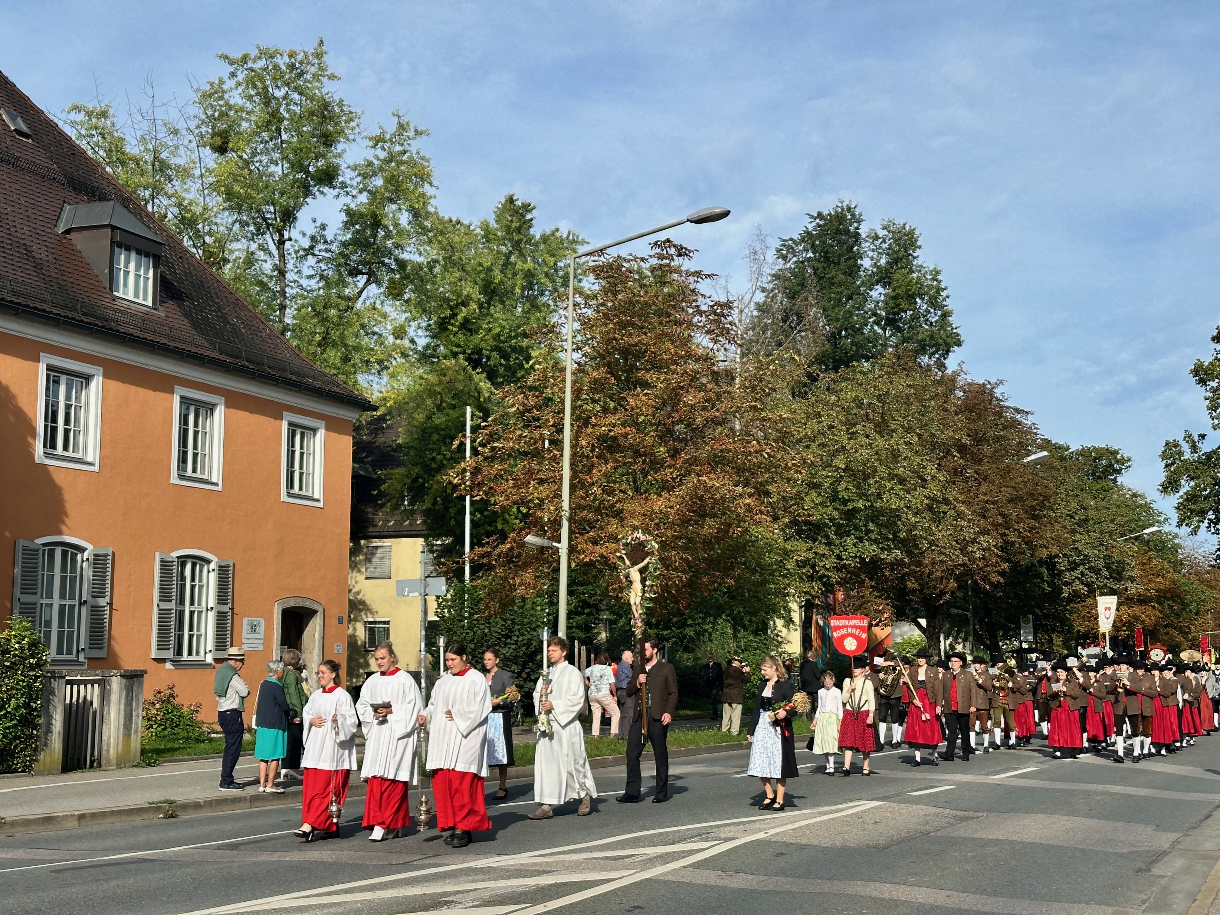 Wie gewohnt nahm der Inngau wieder mit einer großen Abordnung beim Festzug und Gottesdienst zum Erntedankfest beim Rosenheimer Herbstfest im Mangfallpark teil. Im Anschluss ließen die Inngau-Trachtler mit vielen Trachtenkameraden aus den Rosenheimer Trachtenvereinen und den umliegenden Musikkapellen den Sonntag beim traditionellen Blasmusiksonntag im Flötzinger Zelt ausklingen.