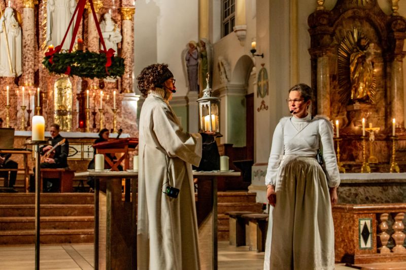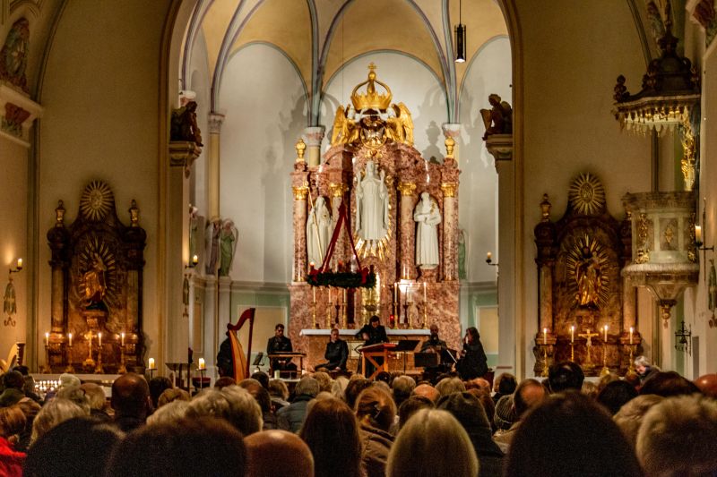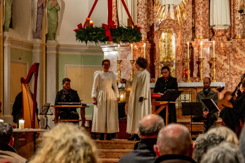 Am Abend des 07.12.2025 lud der Bayerische Inngau-Trachtenverband e. V. erstmals zu einem Adventssingen ein. In der vollbesetzten Kirche „Herz Jesu“ in Bruckmühl konnten sich die Besucher an den Klängen und Worten der Sängerinnen, Musikanten und Sprecherinnen erfreuen. Die als Bühnenspiel im gesamten Kirchenraum vorgetragenen Texte, verfasst von der stellvertretenden Gaumusikwartin Sabine Schwarzenbeck, sorgten für eine wohlgesinnte adventliche Stimmung. Umrahmt vom Kapellenberg Trio, den Sunnaukirchner Sängerinnen, dem Zsammkema Trio und der Rouda Blechblosn begeisterte dieses stimmungsvolle Adventssingen die Besucher durchwegs.