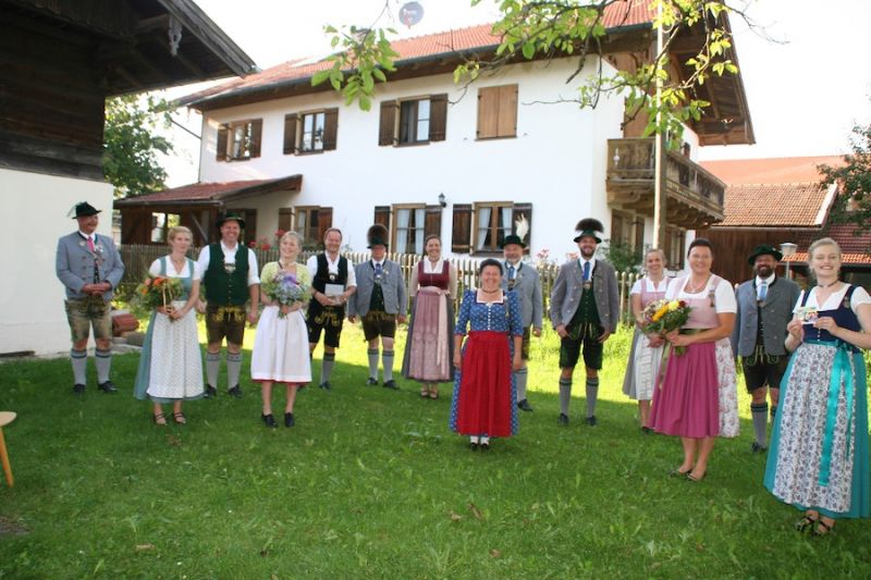 Ein besonderer Dank galt der Kreissparkasse München Starnberg Ebersberg, die das Projekt großzügig unterstützte und die schnelle Realisierung somit maßgeblich ermöglichte. Nach den Grußworten wurde bei musikalischer Umrahmung durch die „Nosnbär Blos“ die Gelegenheit für die geladenen Jugendleiter aus den dem Inngau angeschlossenen Vereinen genutzt, sich mit den Vertretern der Bayrischen Trachtenjugend, 1. Landesjugendleiter Armin Schmid, Schriftführer Andreas Wachs und als weiteres Mitglied der Jugendvorstandschaft Magdalena Probst sowie dem Gauvorstand und -ausschuss sowie Landrat Niedergesäß und Baierns Bürgermeister Martin Riedl, selbst langjähriger Vorstand der Bairer Trachtler, auszutauschen.
