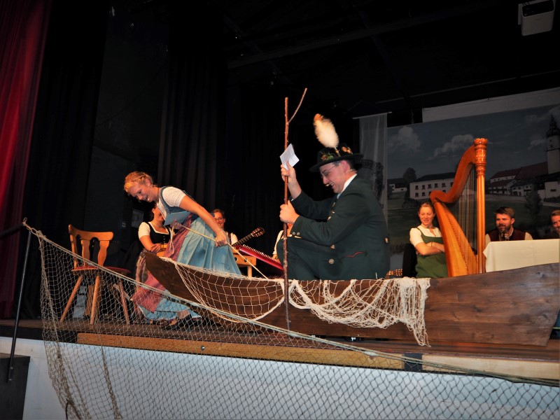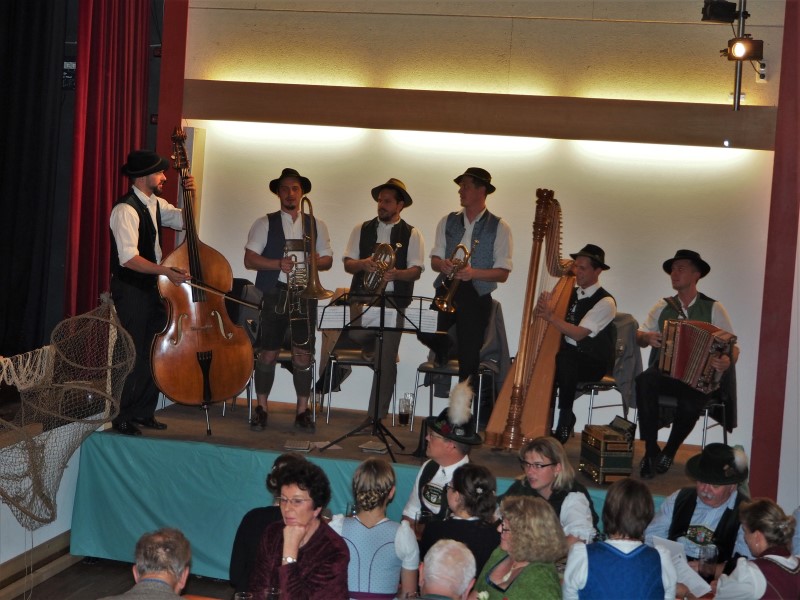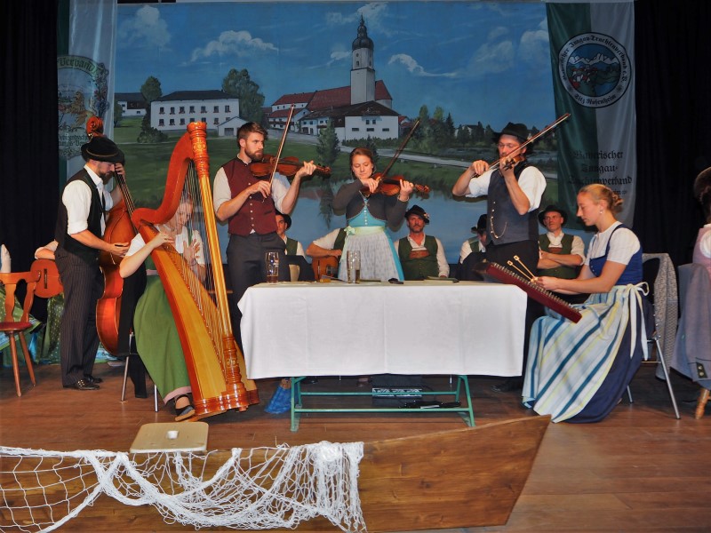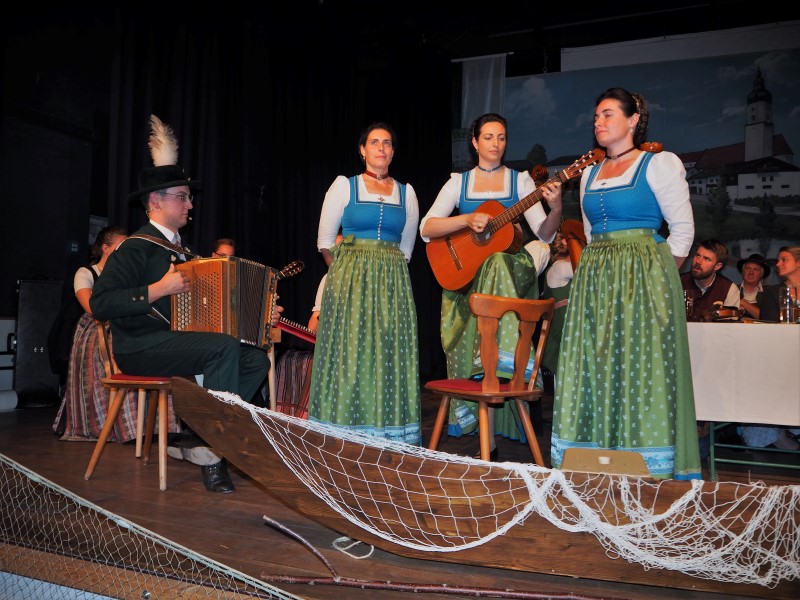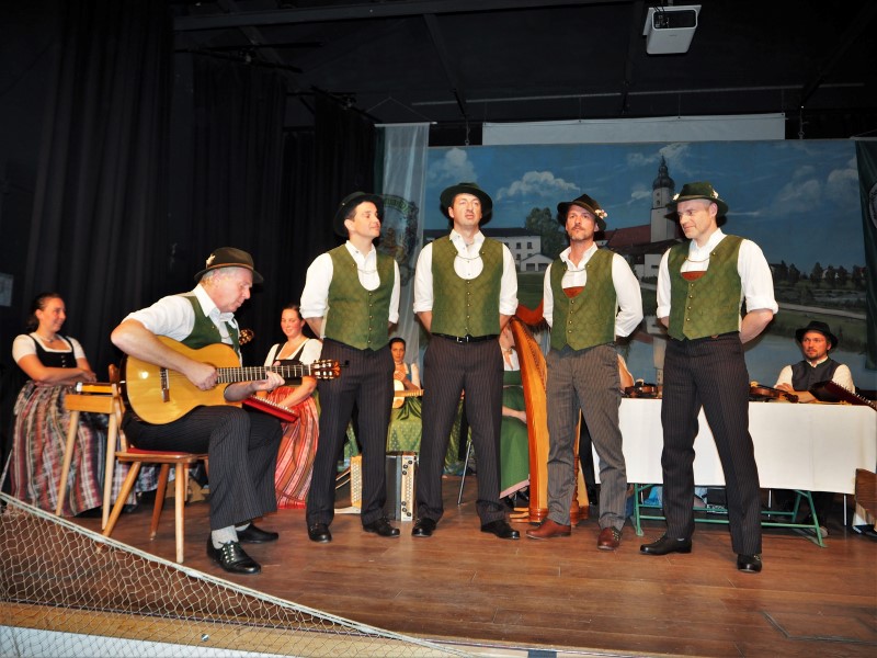 Je zwei Musik- und eine Gesangsgruppe aus beiden Gauen sorgten dabei für beste Unterhaltung. So sangen die Geschwister Stuhlmüller zum Beispiel vom scheena Summa, der scho umma is und der Reischenharter Viergsang gab ein altes Schiffsleut-Lied zum Besten. Dies passte in das musikalische Motto des Abends, denn die Ansager Regina Hellthaler und Markus Gromes bewegten sich in ihren Beiträgen am Inn entlang und machten immer wieder Halt, um die verschiedenen Gruppen vorzustellen. So erfuhren die Zuhörer auch etwas über die Höglinger Stubnmusi mit Hackbrett, Zither und Gitarre oder die Baumgartner Geigenmusi aus Ostermünchen, die mit ihren feinen Klängen überzeugten. Die Kloahäusl Musi aus Prutting und die Virgina Blos vervollständigten die Runde und brachten manchen Zuhörer zum mitwippen.