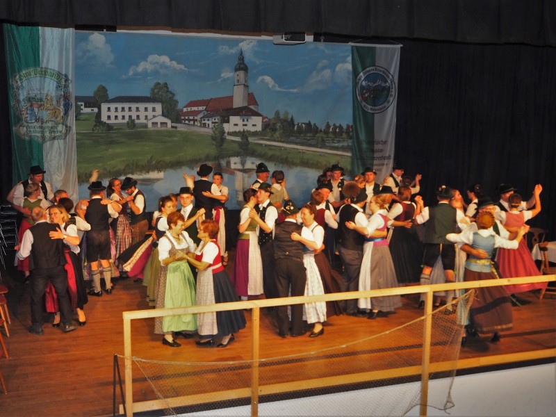 Nachdem die Moderatoren sich mit einem Gedicht über die scheene Heimat verabschiedet hatten, wurde dann auch eilends die Bühne geräumt und die Virgina Blos spielte schwungvoll zum Tanz auf. Mit diesem abwechslungsreichen und kurzweiligen Programm war es eine gelungene Premiere der gauübergreifenden musikalischen Zusammenarbeit und den Besuchern bleibt zu hoffen, dass es eine Fortsetzung in anderen Projekten gibt.