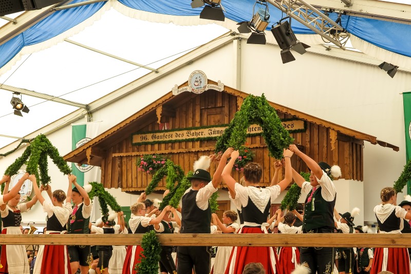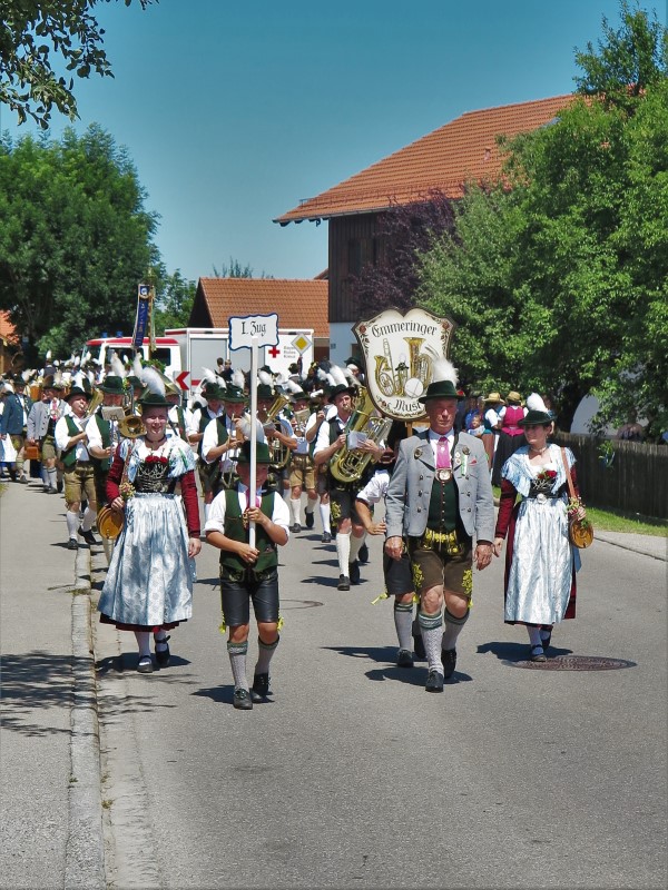 Nach dem Kirchenzug spielte die Emmeringer Musi zur Unterhaltung im schön dekorierten Festzelt und es wurden zahlreiche Ehrtänze der anwesenden Vereine gezeigt. Auch die Emmeringer selbst bewiesen ihre starke Nachwuchsarbeit bei den Auftritten der Plattlergruppen.