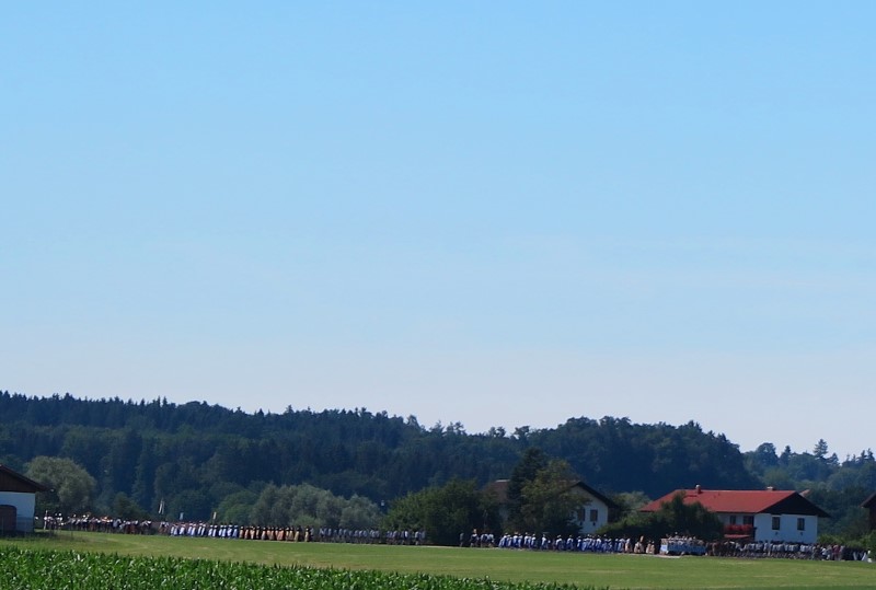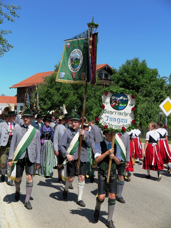 Über 4.200 Trachtler und Musiker waren der Einladung des GTEV „Almarausch“ Emmering zum 96. Gaufest des bayerischen Inngau-Trachtenverbandes gefolgt und zeigten mit Ihren verschiedenen Festtrachten die Liebe zur Heimat und zum Brauchtum. „As Gwand drückt wos aus“, so stellte Pfarrer Jakob Brandl in der Predigt fest. Dies sei schon in der Bibel immer wieder festgehalten und an diesem Tag sehe man es in Emmering. Denn mit unserem Gwand zeigen wir, was uns wichtig ist und woran das Herz hängt. Heimatliche Geborgenheit sei dabei genauso wichtig, wie das tägliche Essen und Trinken, so Brandl. 1. Vorstand des Festvereins Peter Trenkler bedankte sich für den Gottesdienst und für die Predigt, „die allen aus dem Herzen gesprochen hat“.