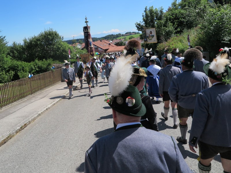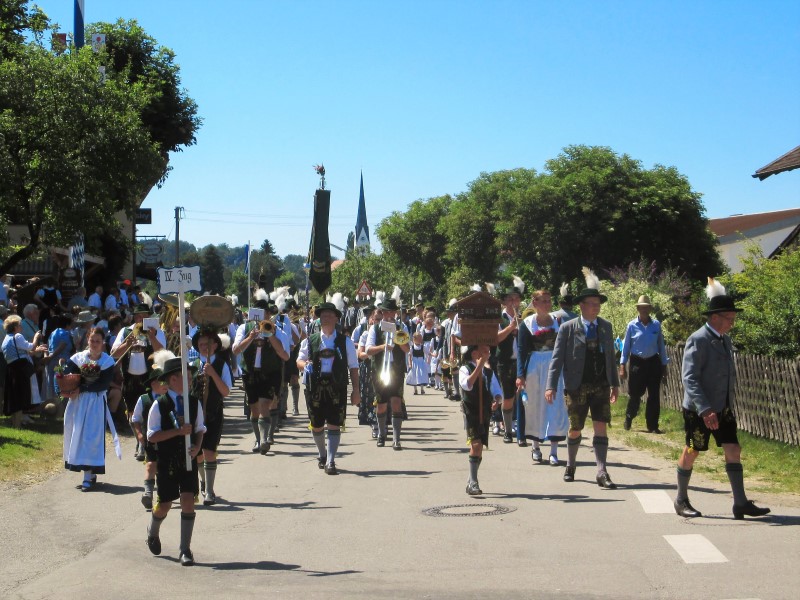 Mit über 240 Trachtlern konnte der Festverein dann den Festzug durch den geschmückten Ort anführen. Insgesamt waren 53 Vereine der Einladung zum diesjährigen Gaufest gefolgt und trotz der hohen Temperaturen sah man die Freude der Teilnehmer über die Begegnungen mit Mitgliedern anderer Vereine.