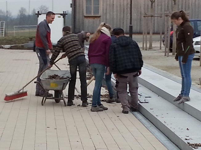 So wurden Fliesen eingelagert, der Dachboden des Veranstaltungssaales gereinigt, die Außenanlagen von Überresten des Rohbaus befreit und die Selbstversorgerküche im 2. OG des Jubi-Hauses gereinigt und mit allem Nötigen bestückt.