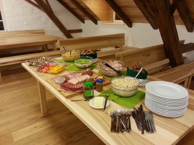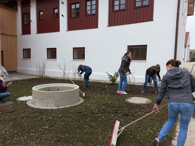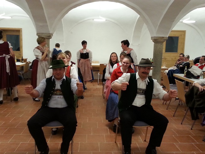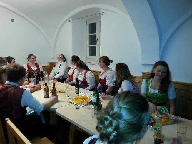 Bis in die frühen Abendstunden werkelten die fleißigen Dirndl und Buam und so konnten alle geplanten Arbeiten erfolgreich abgeschlossen werden. Nachdem alle die Arbeitskleidung gegen a boarisches Gwand getauscht hatten, stärkten sie sich an der mitgebrachten Brotzeit.