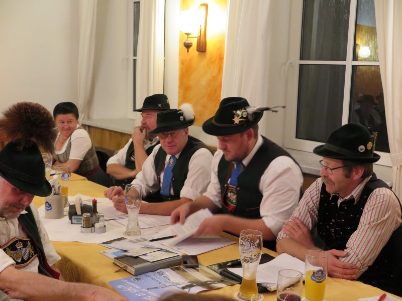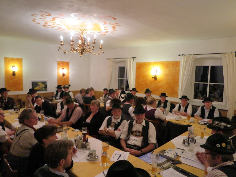 Nach der Führung begann die Versammlung im Gasthaus zur Post in Steinhöring. Die Gaubrauchtumswarte Helmut Hofstetter und Georg Stinauer konnten dazu zahlreiche Vereinsvertreter begrüßen. Sepp Kolb, der die Sachausschusssitzung der Landestagung in Sennfeld besucht hatte, berichtete von dieser. So wurde z. B. das Mundart-Memory neu aufgelegt und ist bei der Geschäftsstelle des Bay. Trachtenverbandes wieder erhältlich.