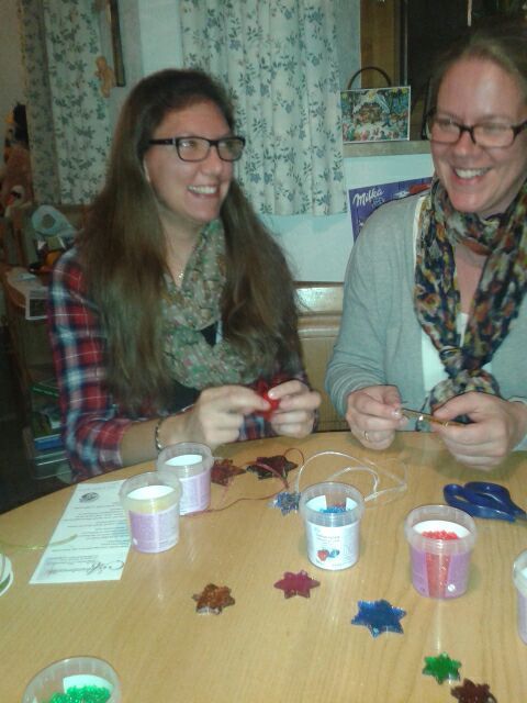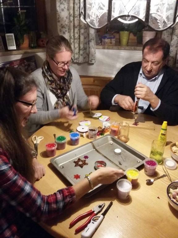 Monika Hiendl, stellvertretende Gaujugendleiterin im Chiemgau Alpenverband, und Johanna Weigl, 2. Gaujugendleiterin vom Inngau waren letzte Woche fleißig beim Basteln für die Sternstunden-Aktion beim Adventsmarkt in Holzhausen. Mit Schmelzgranulat wurden die Stern-Formen befüllt und dann für 20 Minuten bei 200 Grad in den Backofen geschoben. Fertig waren die Sterne.