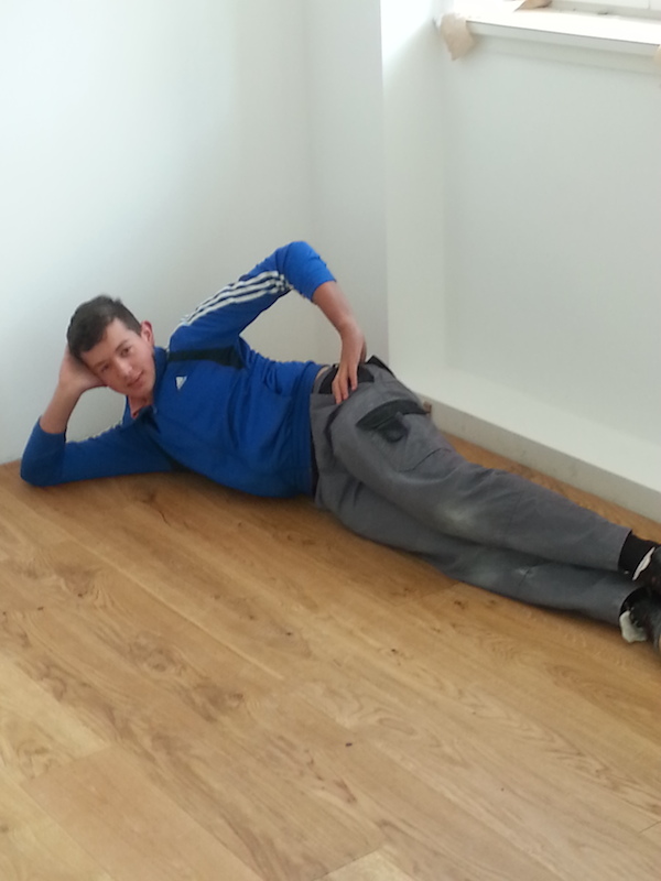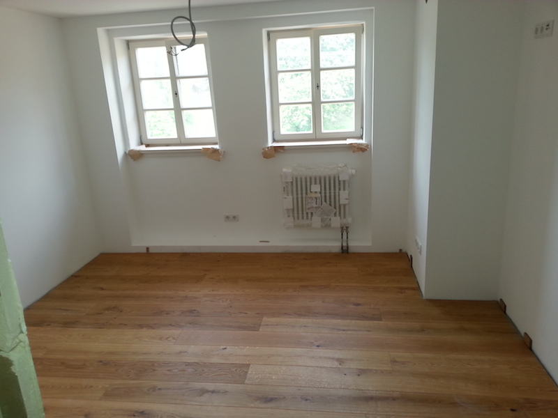 ... das Inngau-Zimmer nimmt Formen an. Zwei fleißige Aiblinger und 4 Emmeringer Trachtler, darunter auch 2. Gauvorstand Pankraz Perfler, waren wieder am Werk. Unter fachkundiger Anleitung wurde nicht nur in unserem Zimmer, sondern auch im Franken-Zimmer der Klick-Parkett verlegt. Die fränkischen Trachtler haben kameradschaftlicher Weise ihr reserviertes Zimmer mit uns getauscht, um eine für uns vorteilhaftere Möblierung zu ermöglichen. So konnten wir uns auf diese Art und Weise bei ihnen für ihr Entgegenkommen revanchieren.