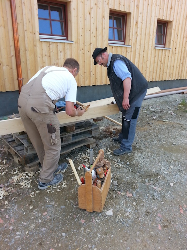 Auch unser Göd, da Chiemgau, war mit seinen Gauvorständen Miche Huber und Georg Westner zum Arbeiten in Holzhausen. Und so werkelte man mit vereinten Kräften, wie man auf den Bildern sehen kann.