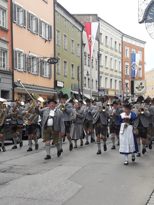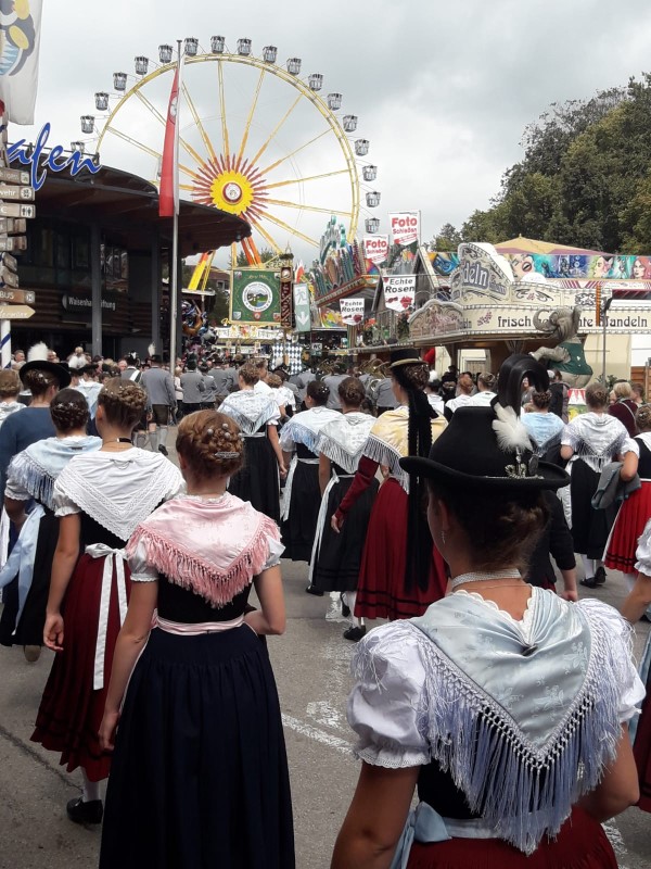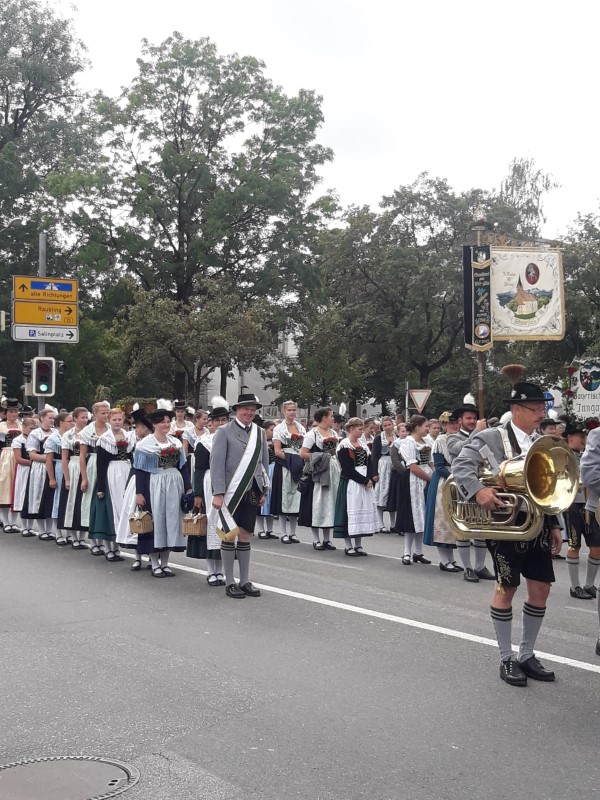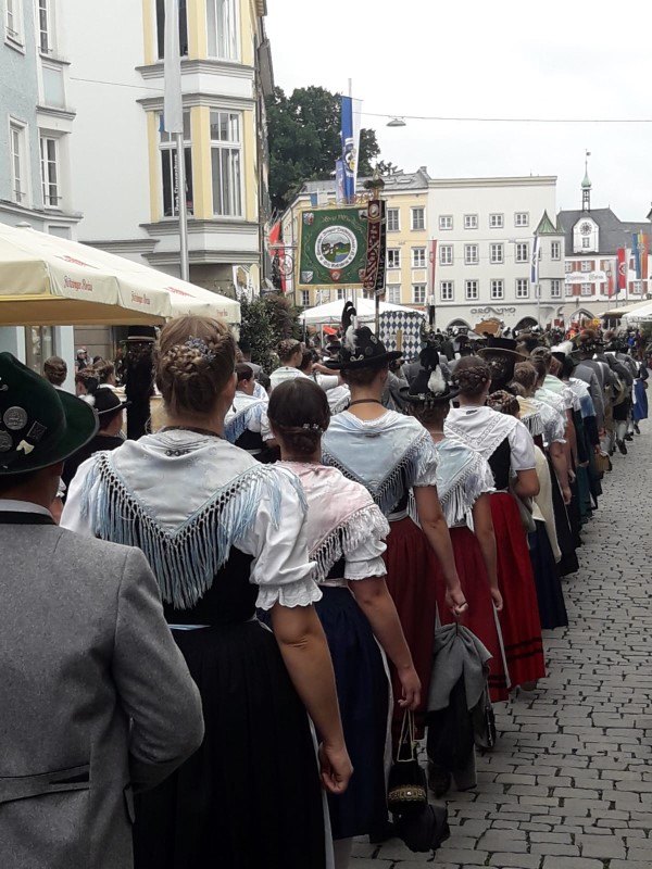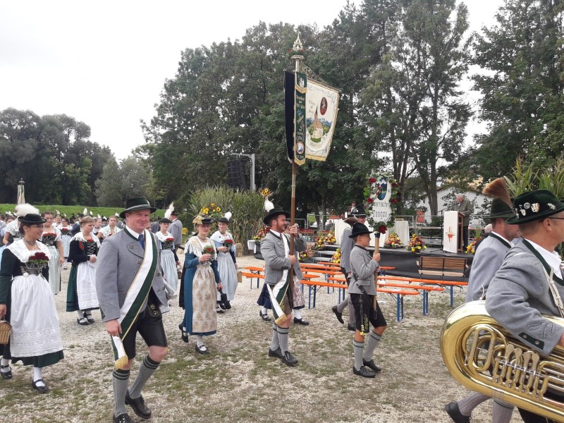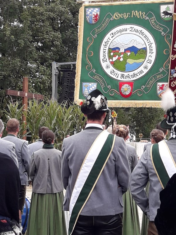 Der bay. Inngau-Trachtenverband nahm mit 100 Teilnehmern am Erntedankfest in Rosenheim teil. Das Wetter hielt stand, so konnte der Gottesdienst im Mangfallpark stattfinden. Der anschließende Festzug führte über den Max-Josef-Platz zur Loretowiese und zum Herbstfestgelände.