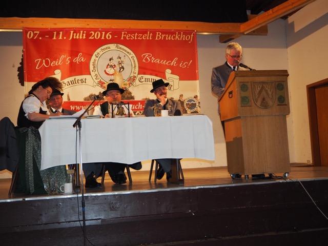 Anschließend richtete sich 1. Bürgermeister Max Maier der Gemeinde Emmering an die Versammlung und lud zum Gaufest 2016 ein. 1. Vorstand und Festleiter der Emmeringer Trachtler Peter Trenkler erläuterte kurz den Ablauf des 96. Gaufestes.