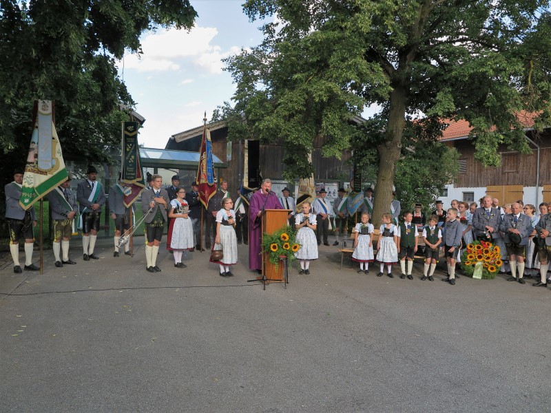 Die Totenehrung, die Diakon Anton Zanker vornahm, fand bei der Vereinslinde statt, die bei der Gründung gepflanzt wurde. 1. Gauvorstand Georg Schinnagl dankte den Vorfahren für den Aufbau der Kultur und der Werte, die bei uns auch heute noch gültig sind oder es zumindest sein sollten. Er ging kurz auf die weltpolitische Lage im Sommer 2018 ein und appellierte an jeden Anwesenden, dass er das Seine dazu beitrage, unser Land und unser Hoamat zu erhalten oder sich bei bereits vergessenen Werten auch wieder auf das Altbewährte zurückzubesinnen.