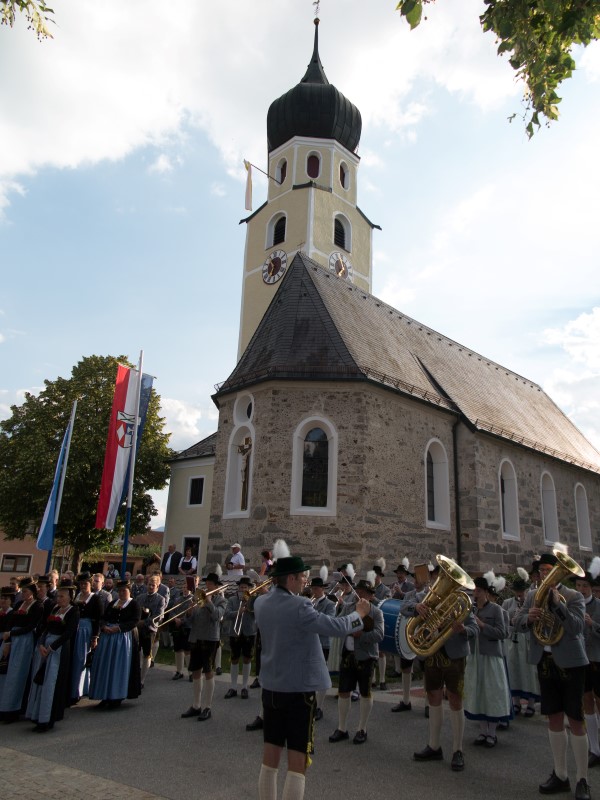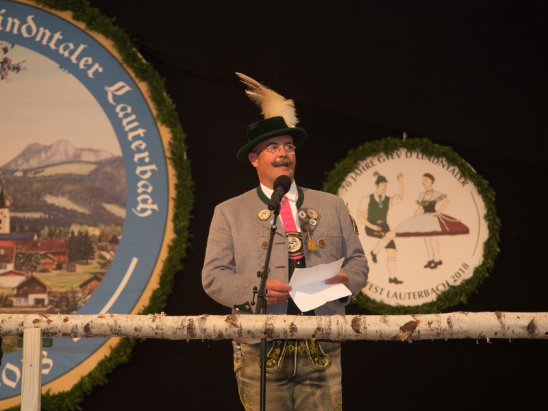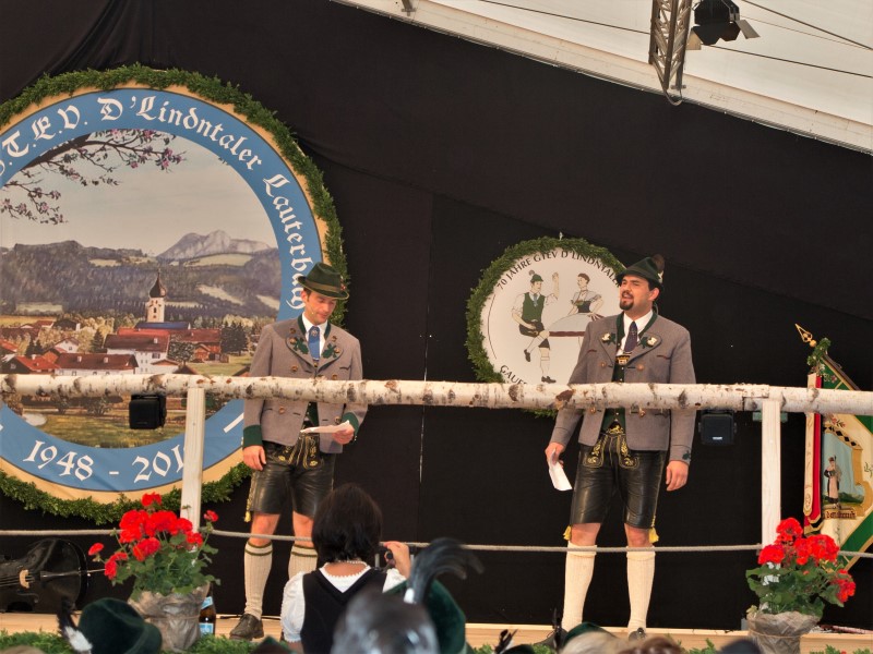 Nach dem Rückmarsch zum Festzelt folgte ein unterhaltsamer und kurzweiliger Gauheimatabend. Die beiden Festleiter Peter Schlosser und Sepp Brem jun. und 1. Vorstand Sepp Brem sen. begrüßten mit einem Lied die Gäste und sangen von den verschiedenen Aufgaben, die im Vorfeld bewältigt werden mussten. Schirmherr und Bürgermeister Christian Praxl dankte in seiner kurzen Ansprache der Vorstandschaft und dem Festausschuss für deren Arbeit und drückte seine Hoffnung auf ein schönes Fest aus. Den Grußworten des 2. Gauvorstandes Pankraz Perfler folgte der Auftritt der Kindergruppe, die nicht nur jede Woche eine Plattler- sondern auch eine Gesangsprobe abhält. So sangen die Kinder mit „de Lindntaler Lauterbach“ von der Freude, das Fest ausrichten zu dürfen. Mit derzeit etwa 35 Kindern und 15 Jugendlichen ist auch die Zukunft des Vereins gesichert.