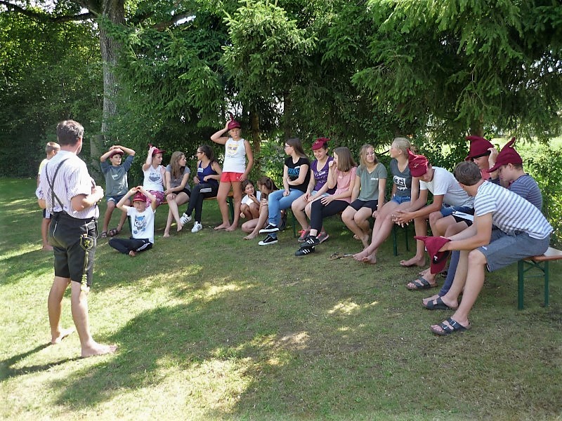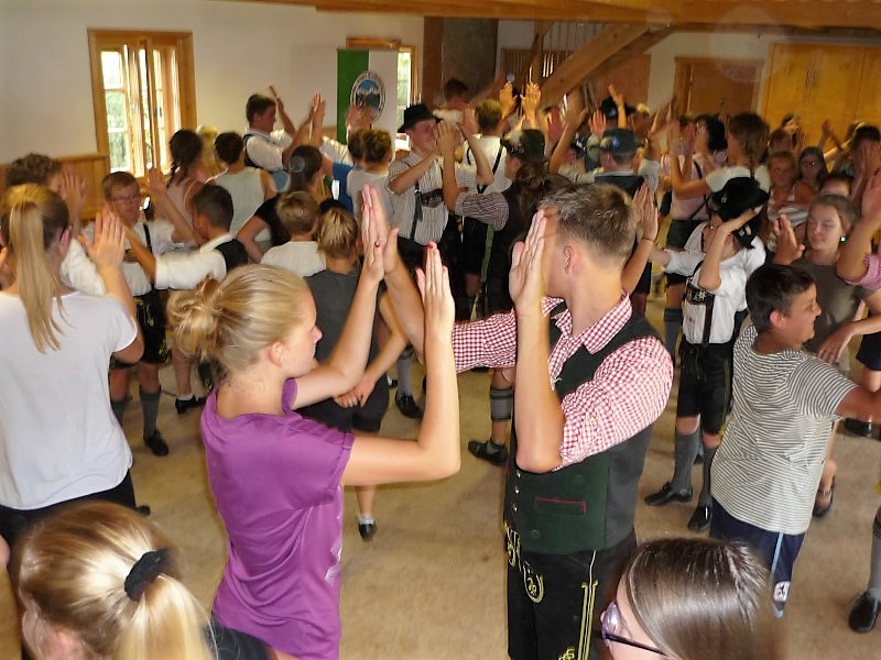 Brotbacken, ein Tanzkurs, den ein bayerischer Abend mit Musik und Tanz abschloss, viele Spiele, Pool baden und natürlich die abendlichen Lagerfeuer mit Liedern rundeten das Programm in schönster Weise ab.
