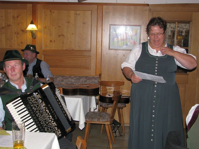 Gabi Reiserer, begleitet von Hans Wiesholzer brachte den Besuchern, echtes Bayerisches Liedgut nahe. Lieder wie z.B. „Hör i d´Glocken scho läut´n“ wurden meist dreistimmig eingeübt und von den Anwesenden mit Begeisterung gesungen.