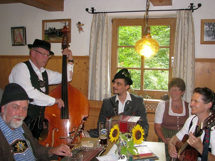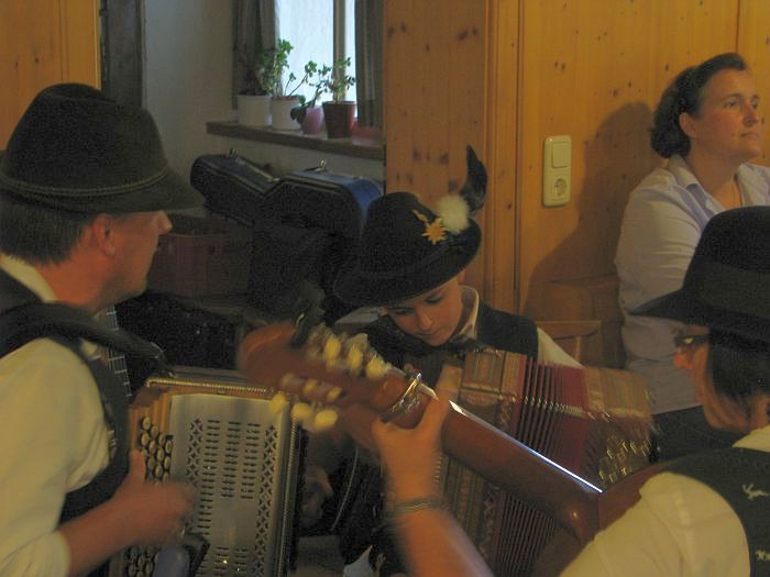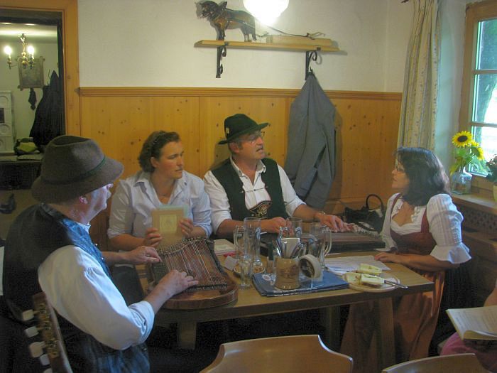 Der ein oder andere Regenschauer tat der Stimmung beim Almsingen und -musizieren des Bayerischen Inngau Trachtenverbandes keinen Abbruch. Auf der Schlipfgrubalm wurde in der voll besetzten guten Stube und im extra aufgestellten Zelt, gesungen und musiziert. Die Bairer Alphornbläser, die Mitteralm Musi, sowie sieben weitere Musik- und Gesangsgruppen gaben ihr Bestes zu Gehör. Ebenso gehörten, gemeinsam mit den Zuhörern gesungene Lieder, wie „Von Mühlegg bis Schneizelreit“ zum Programm.