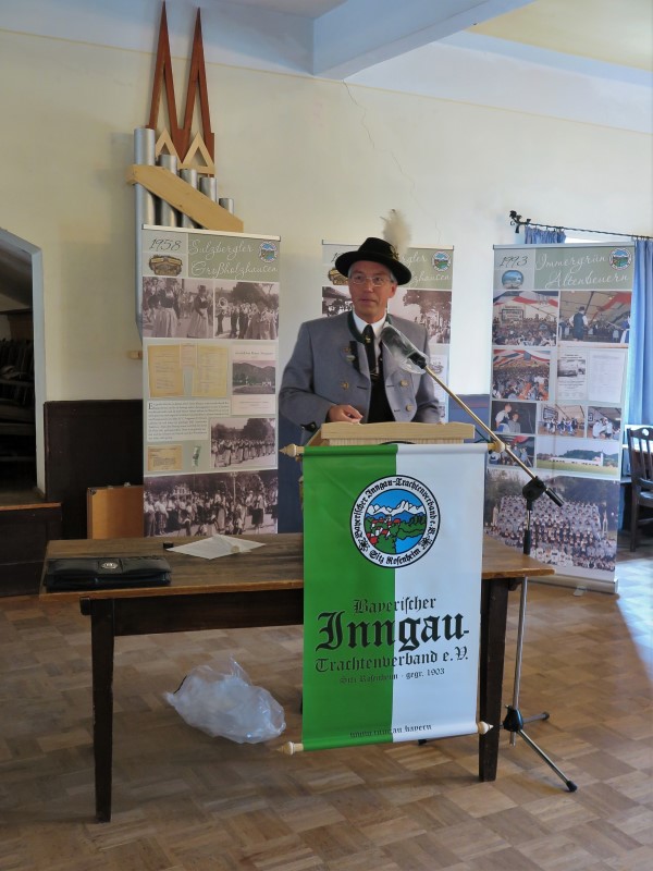 Es folgten Grußworte der verhinderten Gaufestschirmherren Georg Weigl, 1. Bürgermeister von Tuntenhausen und Landrat Otto Lederer. Letzterer ging auf das Zitat von Georg Mahler ein, das auf der Internetseite des Gauverbandes zu lesen ist: "Tradition ist die Weitergabe des Feuers und nicht die Anbetung der Asche." Lederer betonte, dass der Gauverband mit der Präsenz in den neuen Medien hier einen guten Beitrag leistet und das Motto „Bleib‘n ma jetz dahoam, na seng ma uns boid wieder“ sehr treffend gewählt ist. „Midanand steh ma’s durch“, so die einhellige Meinung der Redner. Zum Abschluss erhielt Landrat Otto Lederer die erste offizielle Einladung zur Landesversammlung des bay. Trachtenverbandes, die am 10./11. Oktober in Oberaudorf stattfinden soll.