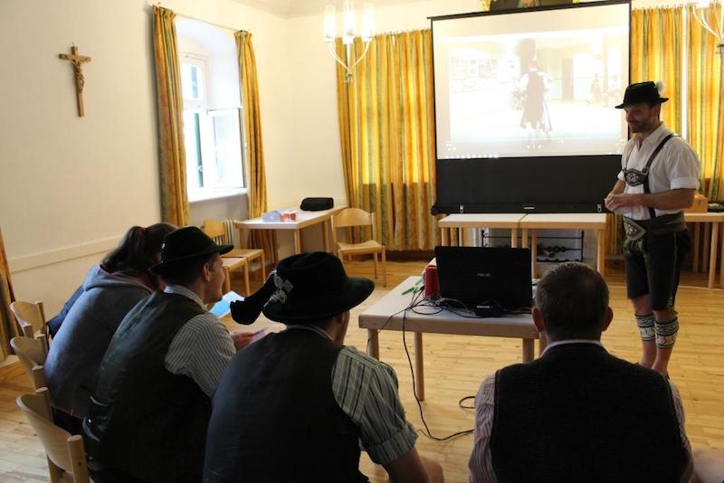 Am Samstag gab es drei Gruppenstationen zu absolvieren. Bei den Gauvorplattlern Georg Sollinger und Seppe Brem wurde erarbeitet, was eine gute Plattlerprobe und einen guten Vorplattler ausmacht. Preisrichterobmann Flori Griebl und Preisrichter Edmund Neumaier gaben den Teilnehmern Einblicke in die Abläufe und Richtlinien beim Preisrichten. Anhand einiger Videoaufnahmen konnte sich jeder gleich selbst im Bewerten versuchen und lernen, worauf es ankommt. Christina Thusbaß und Michi Schwaiger schließlich überlegten gemeinsam mit den Gruppen, was wichtig ist, damit es erfolgreich „midnand in de Zukunft“ gehen kann, was man als einzelner und als Verein von der Mitgliedschaft im Gau hat und wie man seine Aktiven im Verein immer wieder motivieren kann.