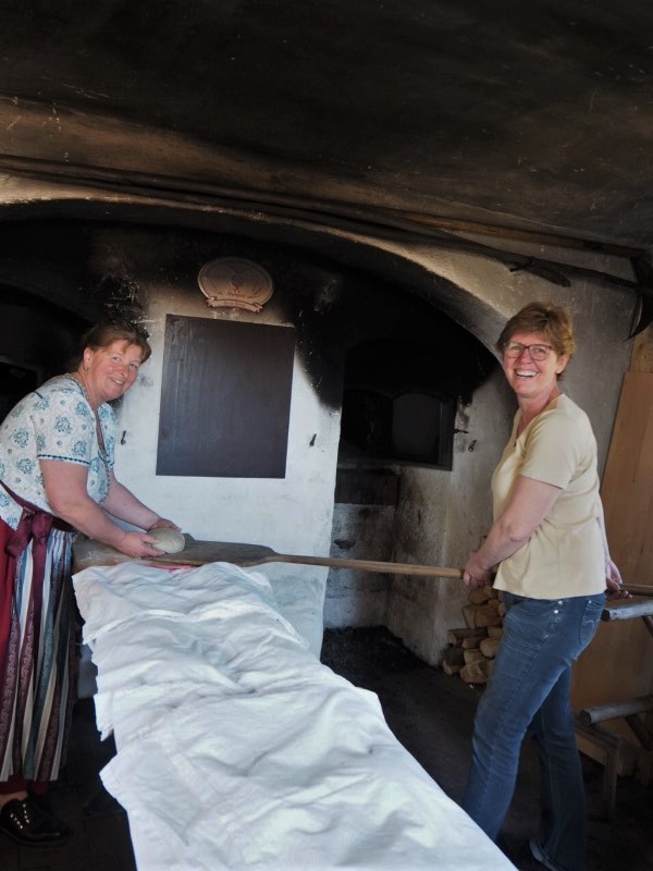 Dazu machten sie sich dieses Mal auf den Weg ins Trachtenkulturzentrum nach Holzhausen. Am Vormittag konnte noch ein Teil der Ausstellung „Schua und Strümpf“ im Museum besichtigt werden. In der Zeit bis zum Mittagessen wurde die Kegelbahn getestet. Andere interessierten sich für den Brotbackofen und konnten beim Einschießen der Brotlaibe dabei sein.