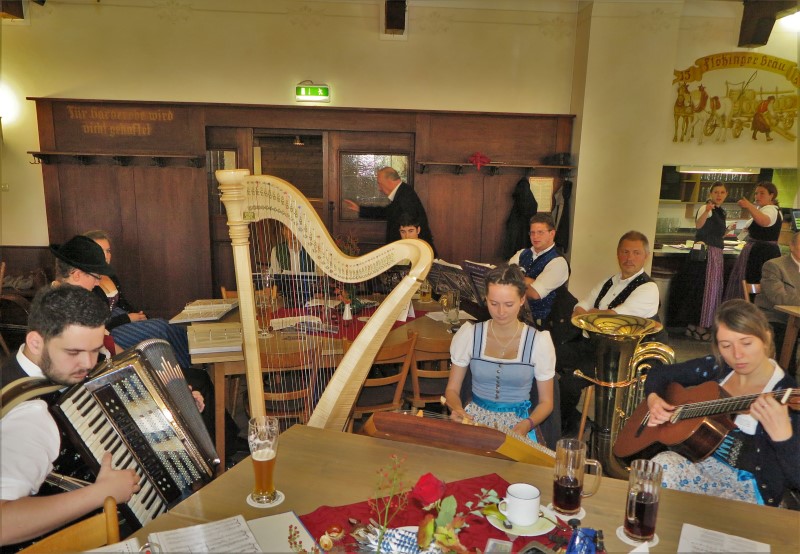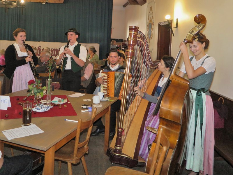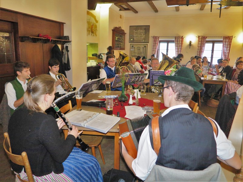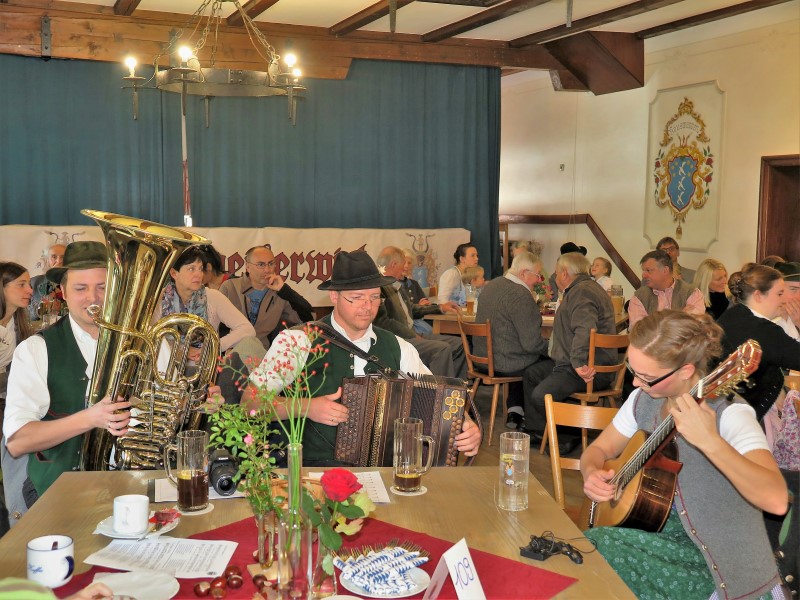 Am 23.10.16 fand beim Schneiderwirt in Nußdorf der 1. Sänger- und Musikantenfrühschoppen unter dem Motto „Heast as scho?“ statt. Die Gaumusikwarte Thomas Weinzierl und Regina Hellthaler konnten dann auch zahlreiche Besucher begrüßen, die 6 Gruppen aus dem Inngau mit einer Vielzahl von verschiedenen Instrumenten zu hören bekamen. Mit dabei waren „a bissl a Musi“ aus Brannenburg, die Oimräsalmusi aus Nußdorf, die BraMa Musi aus Heufeld und die Mitteroim Ziachmusi aus Kolbermoor/Emmering. Als Gesangsgruppen gaben der Schmid Zwoagsang aus Kiefersfelden und das Schuibustrio aus Nußdorf lustig-boarische Lieder zum Besten. Als Ansager führte Bene Mies aus Nußdorf durch das Programm und stellte die Gruppen vor. Nach dem offiziellen Teil, in dem auch die Gäste bei zwei gemeinsamen Liedern ihre Stimmen unter Beweis stellen konnten, spielten die Musikgruppen weiter auf und so dauerte der Frühschoppen bei vielen noch bis nach dem Mittagessen.