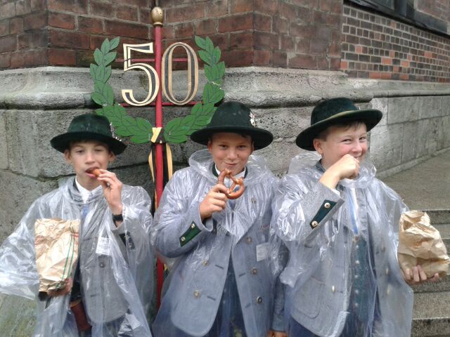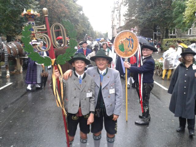 25 Taferlträger vom Inngau waren dieses Jahr beim Trachten- und Schützenzug in München dabei. Trotz des schlechten Wetters und des weiten Fußmarsches war die Stimmung bestens und das verdiente Handgeld wurde gleich wieder investiert.