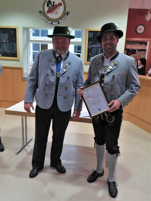 Im Rahmen des Jahresabschlussessens des bay. Inngau-Trachtenverbands dankte die Vorstandschaft den ausgeschiedenen Ausschussmitgliedern. So wurden nach 3 Jahren im Gauausschuss die bisherige Dirndlvertreterin Christina Schlagbauer, 2. Jugendleiterin Johanna Weigl, 2. Trachtenwartin Rosi Maierbacher und 2. Pressewart Harald Michael Schneider von 1. Gauvorstand Georg Schinnagl mit Dankesworten verabschiedet. Bereits 6 Jahre war Georg Sollinger als Gauvorplattler im Ausschuss tätig, bevor er sich im Herbst nicht mehr zur Wahl stellte. Für ganze 15 Jahre im Ausschuss konnte 1. Gauvorstand Georg Schinnagl unserem ehemaligen Jugendleiter Wast Fink danken. Für das außerordentliche Engagement in der Ausübung dieses Amtes und die jahrelange Mitarbeit im Ausschuss wurde ihm zudem das silberne Gauehrenzeichen verliehen.