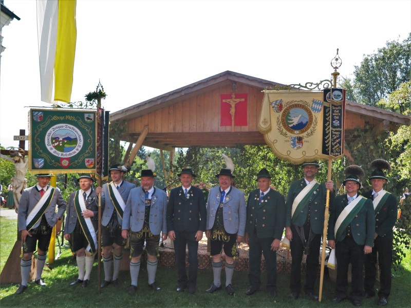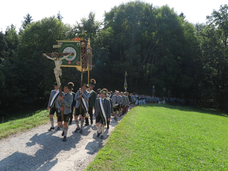 Wie jedes Jahr beging der bay. Inngau-Trachtenverband am dritten Sonntag im August die Trachtenwallfahrt nach Schwarzlack. 1. Gauvorstand Georg Schinnagl konnte bei strahlendem Sonnenschein die Wallfahrer willkommen heißen und begrüßte vor allem die Abordnung des Chiemgau-Alpenverbandes, denn mit der Weihe der Gaustandarte vor 20 Jahren wurde das damals schon freundschaftliche Verhältnis durch deren Patenschaft weiter gefestigt.