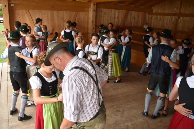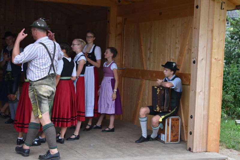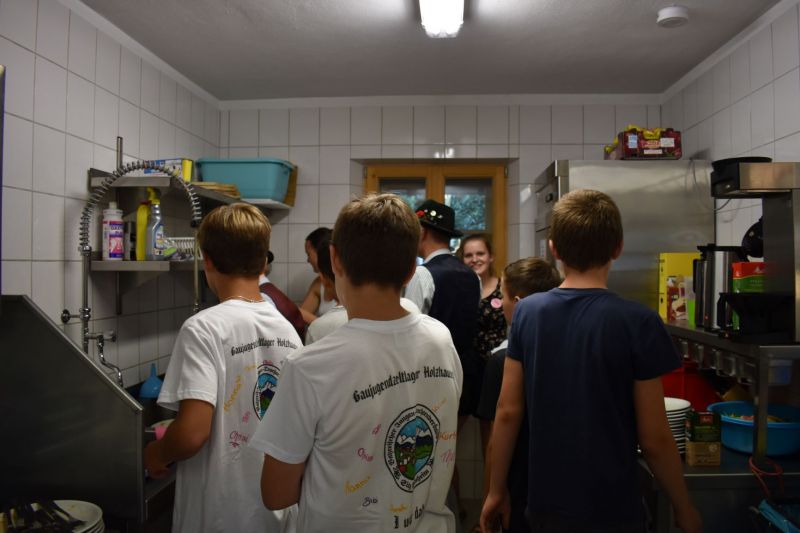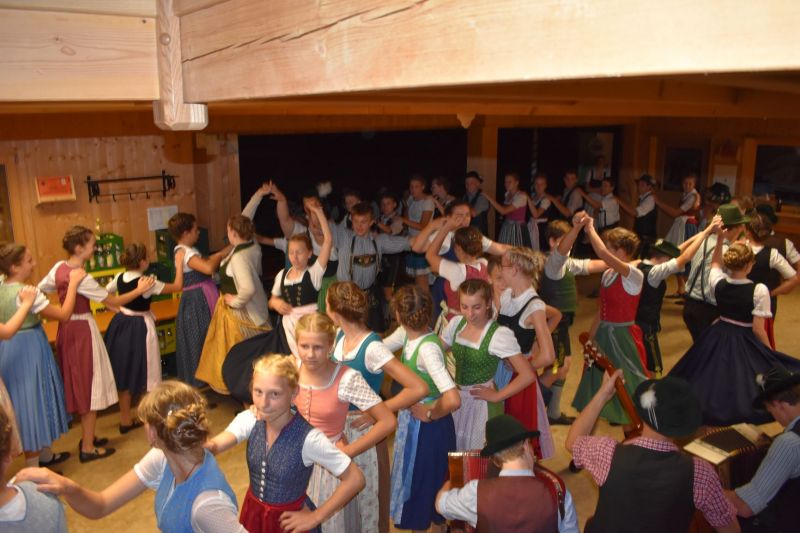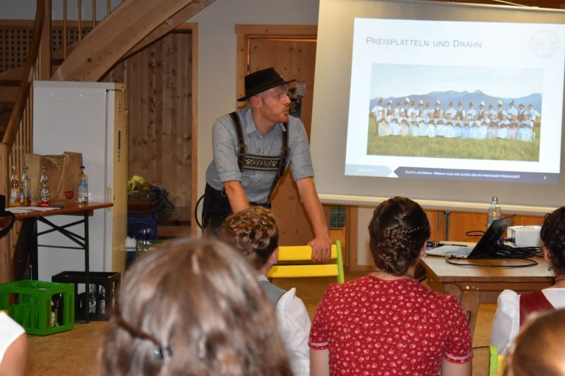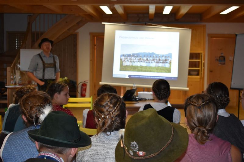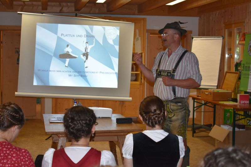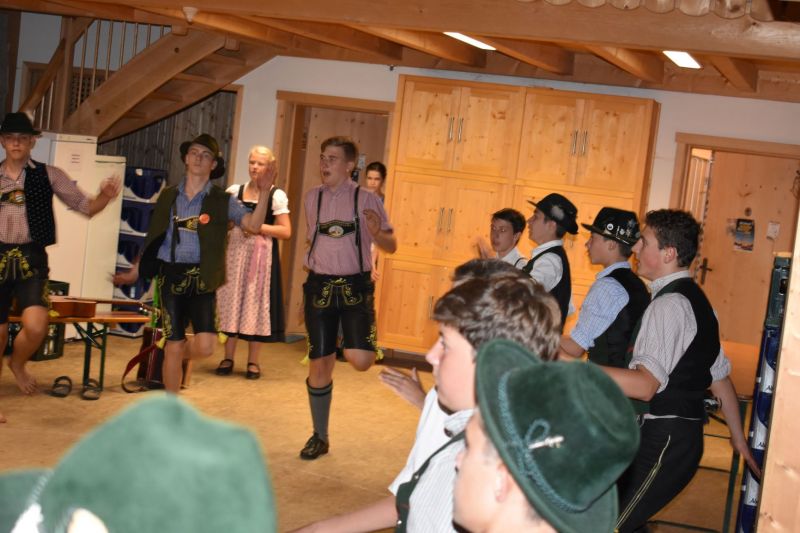Noch oana kurz’n Nacht und am stärkenden Frühstück hod ma si in verschiedene Werkstätten eidrog’n kinna, wo dann Schmuck bastelt, Hoiz brennt, Goaßl gschnoitzt oder scheene Hochsteckfrisuren gmacht worn san. Nach’m Mittagessen hod uns der 1.Gauvorplattler des Preisrichten für‘s Gaupreisdrahn und Platteln genauer erklärt und mia hab’n selber werten deafa. Im Anschluss is dann no a gloane Tanz- und Platterprob abghoit’n worn. Beim Tanzabend is in gmiatlicher Rund’n no amoi aufgspuid und danzt worn. De letzte Nacht hab’n mia am Lagerfeuer no durchgmacht.