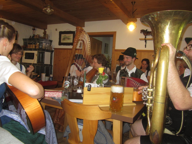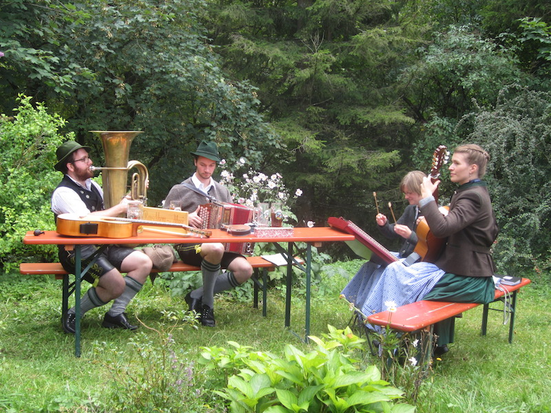 Beim Zweiten Almsingen des Bayr.Inngautrachtenverbandes kamen kürzlich auf die Schlipfgrubalm oberhalb von Brannenburg nicht nur Trachtler, sondern auch viele Wanderer, Volksmusikfreunde und Urlauber, die von der Wirtsfamilie Gasteiger auf´s Beste versorgt wurden. Zum singen und musizieren waren die Bairer Alphornbläser, die Rauschberg Musi, die Kohlbrenner Musi und der Schmid-Zwoa Gsang gekommen, die den ganzen Nachmittag mal drinnen, mal draußen vor der Alm sich hören liesen. Auch in diesem Jahr war wieder Max Beer aus Evenhausen dabei um mit dem Publikum einige Lieder einzuüben und gemeinsam zu singen. „Zünftig wars und schee wars und Wetter hod a no passt“, so die einhellige Meinung der Zuhörer.