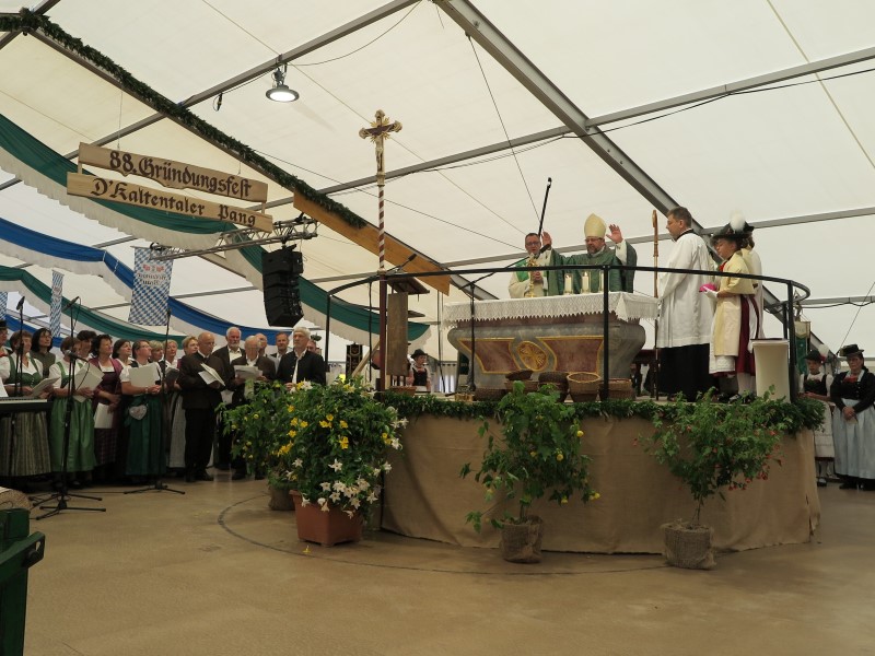 Trotz unbeständigem Wetter folgten über 4.500 Trachtler aus dem Inngau der Einladung des GTEV „d' Kaltentaler“ Pang zum diesjährigen Gaufest. Aufgrund der starken Regenfälle am Vormittag wurde der Festgottesdienst mit Weihbischof Wolfgang Bischof und Domkapitular Daniel Reichelt in das Festzelt verlegt.